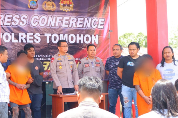 “Enam terduga pelaku yakni, RK (22), CT (20), JL (22), DM (37), BK (43), dan SM (39), diamankan sekitar tiga jam usai kejadian, di wilayah Kecamatan Tomohon Utara. Sedangkan satu terduga pelaku lainnya berinisial LCP (41), diamankan di wilayah Kota Bitung pada hari Kamis (23/2),” kata Kombes Pol Jules Abraham Abast.