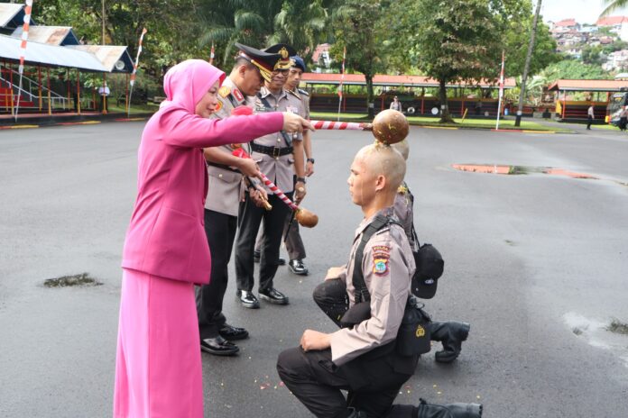 Ditandai dengan pemeriksaan pasukan, pernyataan resmi pembukaan pendidikan serta penyematan tanda pangkat siswa oleh Kapolda Sulut.