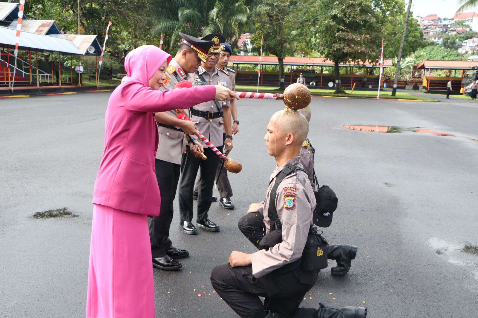 Pada upacara pembukaan ini juga dilakukan tradisi penyiraman air kembang kepada siswa serta sujud dan cium bumi kandung SPN Polda Sulut.