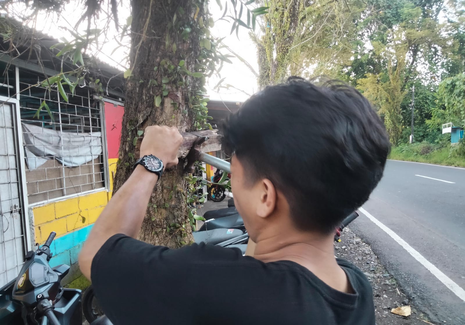 “Memaku pohon membuat kambium di dalamnya rusak, sehingga akan rentan kena penayakit dan pohon itu akan mati. Jika pohon mati, sudah pasti tidak bisa lagi menghasilkan oksigen yang dibutuhkan oleh manusia,” ungkap Exel.