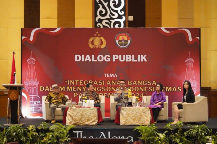 YOGYAKARTA – Kepolisian Negara Republik Indonesia menggelar Dialog Publik dengan tema “Integrasi Anak Bangsa Dalam Menyongsong Indonesia Emas Pasca Pemilu 2024” di The Alana Hotel, Yogyakarta, pada Selasa (05/03/2024).