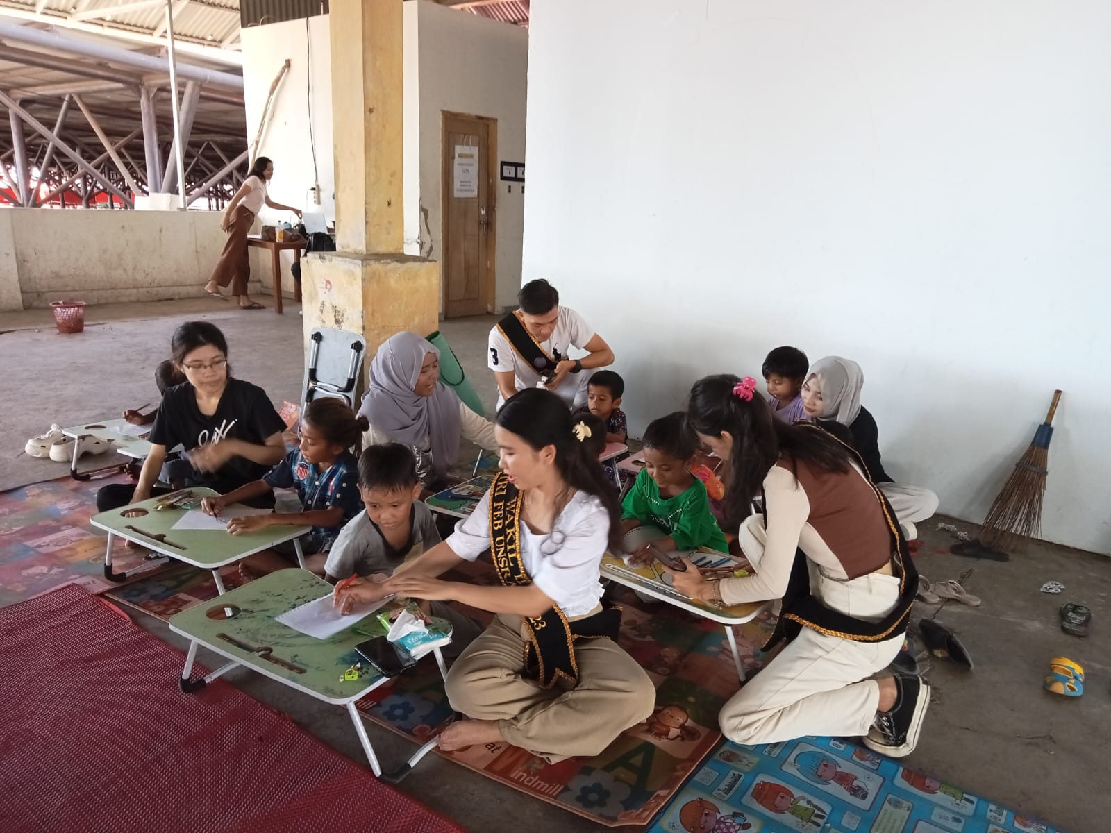 Kunjungan Putra-Putri FEB Unsrat itu untuk membagikan pengetahuan kepada anak-anak yang bertempat tinggal tidak jauh dari Pasar Bersehati Manado.