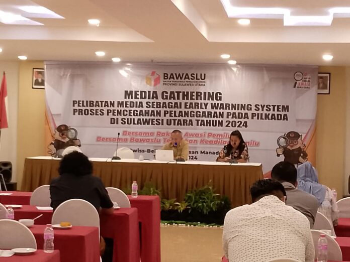 MANADO – Pada sesi kedua Media Gathering bertajuk Warning System Proses pencegahan pelanggaran pada Pilkada serentak tahun 2024 menghadirkan Ketua Persatuan Wartawan Indonesia (PWI) Sulawesi Utara, Vouke Lontaan.