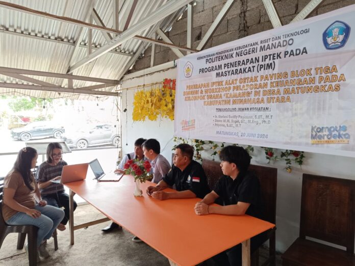 Ketua pengabdian pada masyarakat Polimdo, Ir. S. Switly Peginusa SST MT ketika diwawancarai awak media mengatakan kegiatan ini bertemakan penerapan IPTEK alat cetak paving blok tiga dimensi, dan workshop pelaporan keuangan pada kelompok usaha Kamang di Desa Matungkas, Minut.