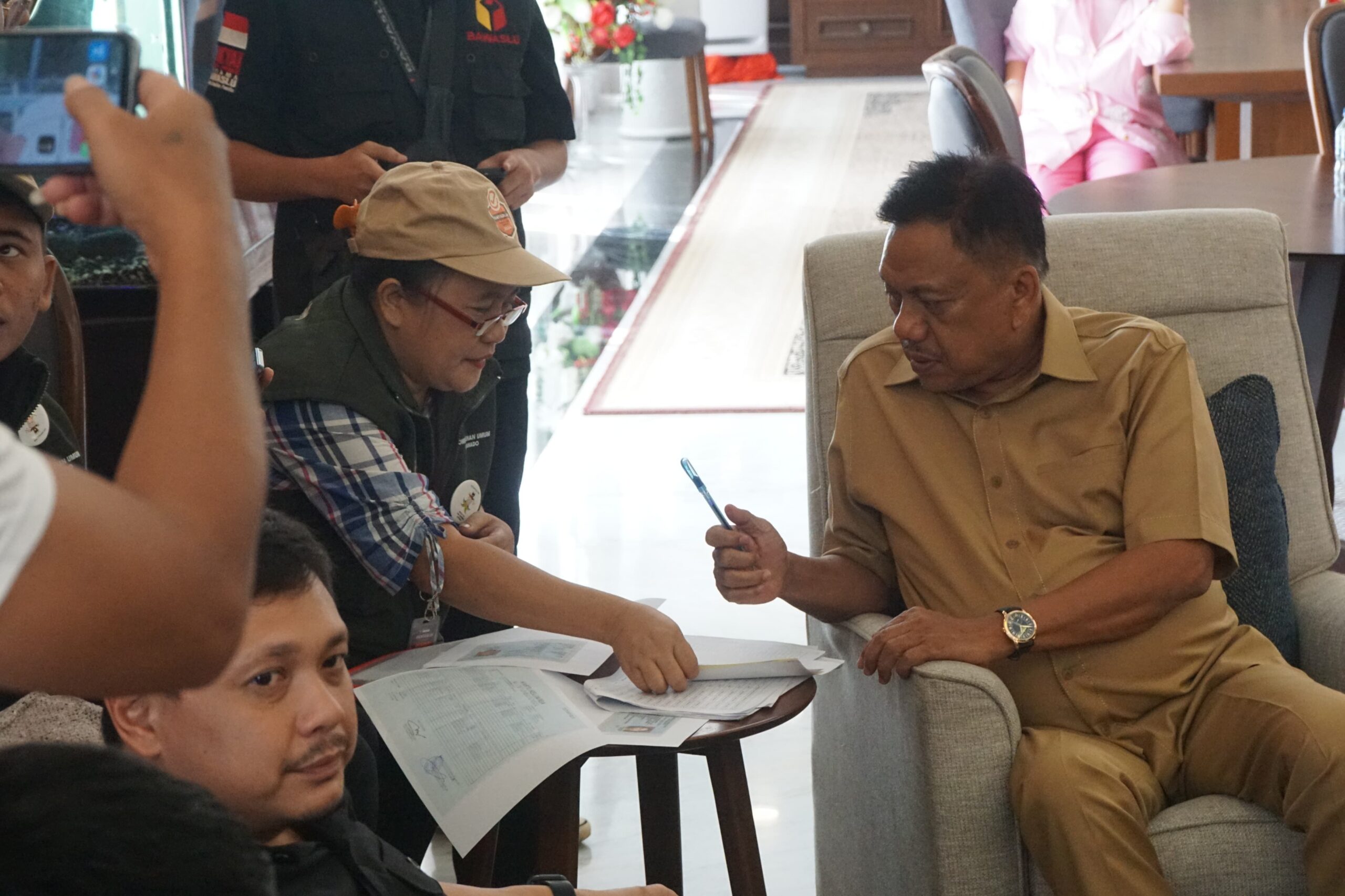 Olly didampingi Ketua TP-PKK Provinsi Sulawesi Utara Ir Rita Dondokambey-Tamuntuan menyambut baik petugas pantarlih, Selasa (2/7/2024).