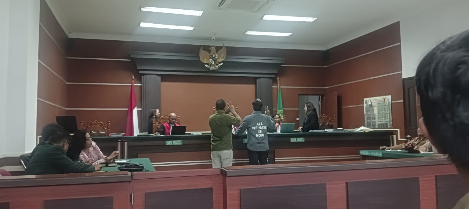 “Kami datang ke Pandu ke rumah tergugat, tidak bertemu dengan Jenly. Tidak bertemu Jenly karena sedang sakit dan di dalam kamar. Jenly tidak keluar dari kamar. Dan hanya istrinya saja, kami tanya ke istrinya bernama Nur, dia menangis nangis karena belum ada uang,” kata saksi Richard.
