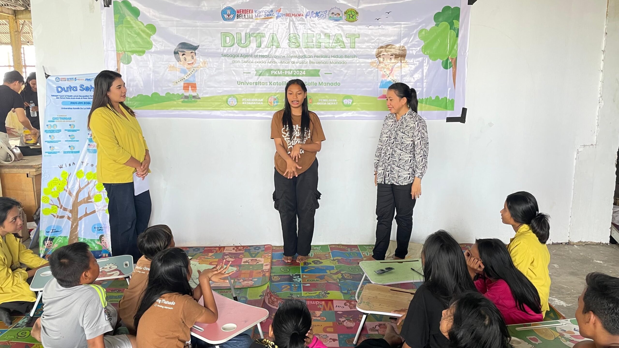 Pada PKM-PM itu, di mana mahasiswa De La Salle Manado telah memberikan edukasi tentang kesehatan, praktek mencuci tangan, menyikat gigi, hingga cara memilih makanan yang bergizi.