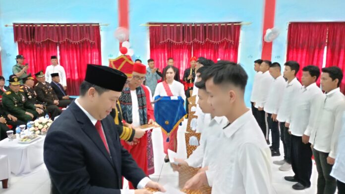 Wakil Gubernur Sulut Steven Kandouw saat membaca sambutan Menkumham RI Yasonna Laoly menyampaikan dalam memaknai HUT kemerdekaan ke-79 RI marilah kita mengisi dengan semangat mengabdi kepada bangsa dan negara.
