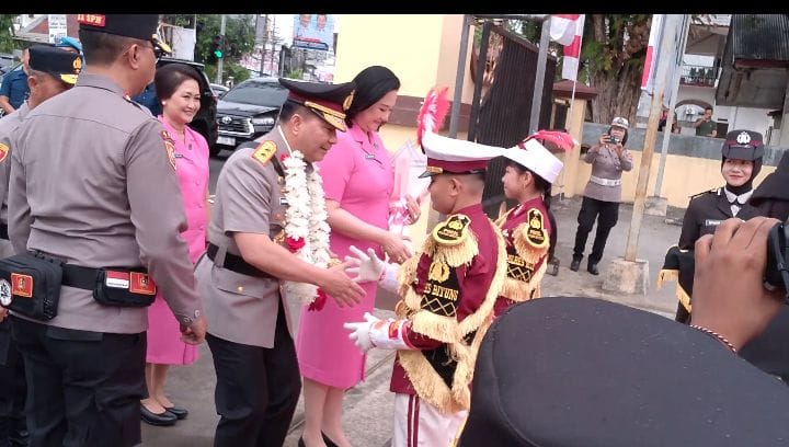 Diawali dengan penyambutan oleh Wakapolda Sulut Brigjen Bahagia Sachi pengalungan dan pemberian bunga oleh Polisi Cilik, jajar hormat, penjemputan oleh Tarian Kabasaran oleh anggota Polri.