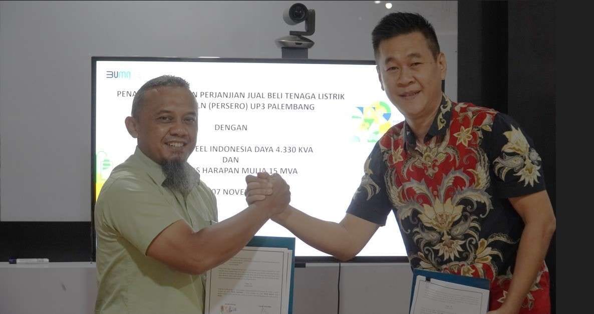 Penandatanganan berlangsung pada Kamis (07/11) di Palembang, yang dihadiri oleh Soesanto Pangestu, Direktur PT Mulia Steel Indonesia dan CV Trans Harapan Mulia, serta Widodo, Manager PLN UP3 Palembang.