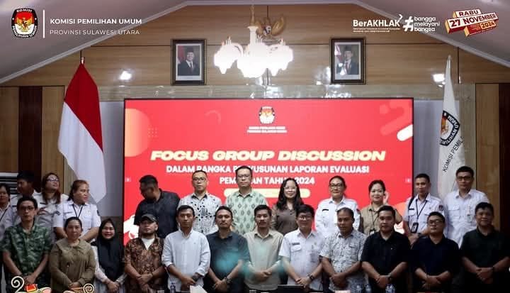 MANADO – KPU Sulut menggelar Focus Group Discussion (FGD) dalam rangka penyusunan laporan evaluasi Pemilihan Tahun 2024.