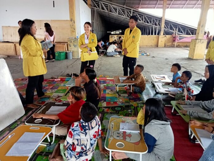 Kunjungan itu bagian dari proyek mahasiswa untuk mengajarkan anak-anak yang ada di lingkungan Pasar Bersehati Manado, yang selama ini menjadi binaan Komunitas Dinding Manado.