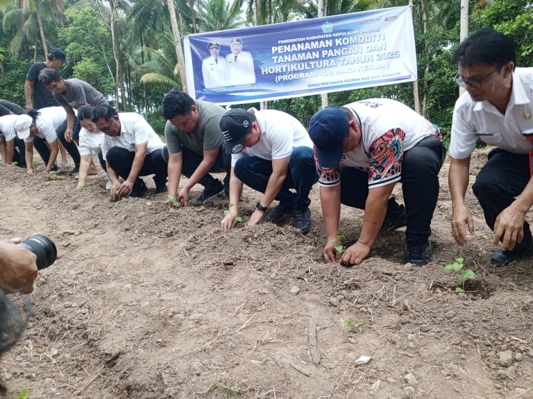 SANGIHE – Bupati Kepulauan Sangihe, Michael Thungari SE MM bersama sejumlah pejabat daerah, melaksanakan penanaman bibit cabai di Kelurahan Angges, Kecamatan Tahuna Barat, Rabu (7/5/2025).