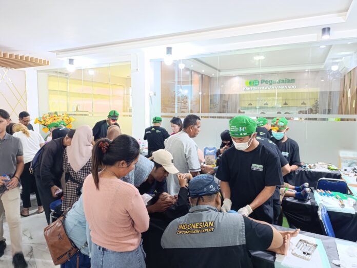 Suasana kegiatan Tanggung Jawab Sosial (TJSL) khitanan massal yang diselenggarakan Kanwil Pegadaian V Manado, Rabu 9 Juli 2025. (ist)