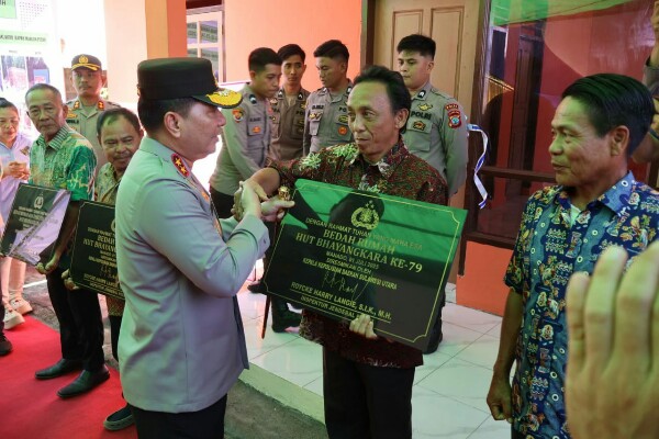 AMURANG – Kapolda Sulawesi Utara Irjen Pol Roycke Harry Langie meresmikan program bedah rumah dan pembangunan fasilitas air bersih dalam rangka Hari Bhayangkara ke-79, di Desa Pakuweru Kecamatan Tenga, Kabupaten Minahasa Selatan, Kamis (10/7/2025).