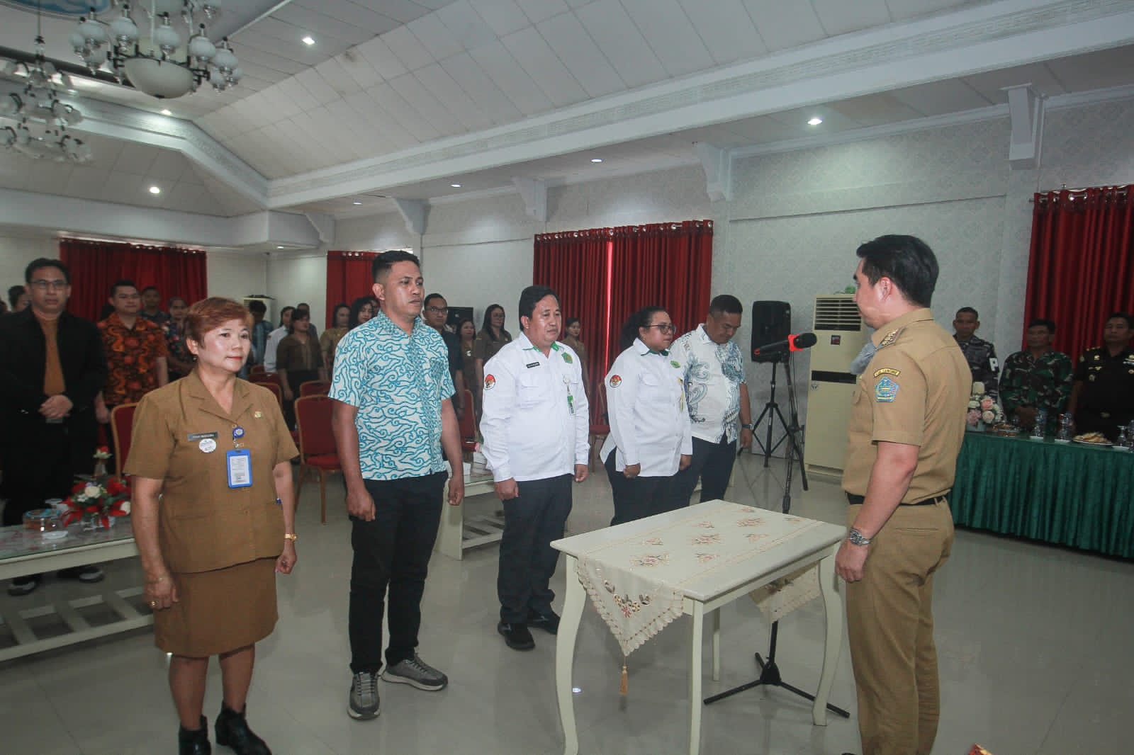 Pelantikan berlangsung di Ruang Serba Guna Rumah Jabatan Bupati, Senin (8/9/2025), dihadiri Wakil Bupati Tendris Bulahari, unsur Forkopimda, Kepala Kantor Kementerian Agama Sangihe, Ketua Bamag Sangihe, Kejari, Kepala Pengadilan Tahuna, Kepala Bagian Kesra Setda, Pastor Paroki St. Yohanes Rasul Tahuna Pst. Jacob Adilang Pr, serta jajaran pengurus LP3KD.