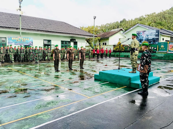 SANGIHE — Kodim 1301/Sangihe menggelar Upacara Peringatan Hari Juang Tentara Nasional Indonesia Angkatan Darat (TNI AD) ke-80 di Lapangan Makodim 1301/Sangihe, Jalan Tatehe Woba, Kelurahan Bungalawang, Kecamatan Tahuna, Kabupaten Kepulauan Sangihe, Senin (15/12/2025) pagi.