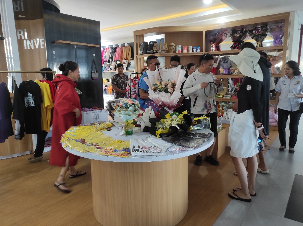 Selama di dalam Gedung Kuliah Terpadu, para turis Tiongkok melihat-lihat Galeri Investasi yang memajang karya UMKM dan berkaitan dengan Pariwisata