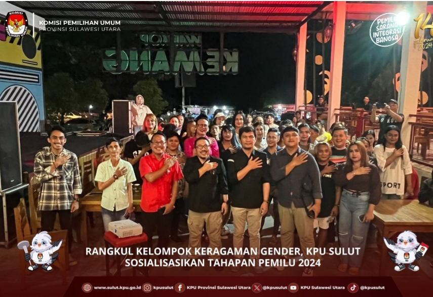 MANADO – KPU Sulut terus mensosialisasikan Pemilu 2024. Salah satunya, dengan cara mensosialisasikan tahapan pemilu menyasar kelompok marginal keragaman gender yang digelar di Cafe Kemang pada Rabu (6/12/2023).