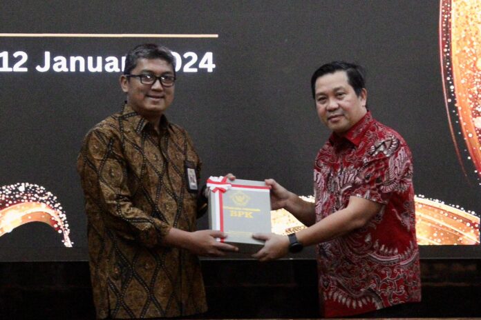 Penyerahan laporan itu terkait pemeriksaan kinerja atas efektivitas upaya pemda dalam penyelengaraan Kawasan Ekonomi Khusus Industri Bitung (KEK Industri Bitung), Jumat (12/1/2024).