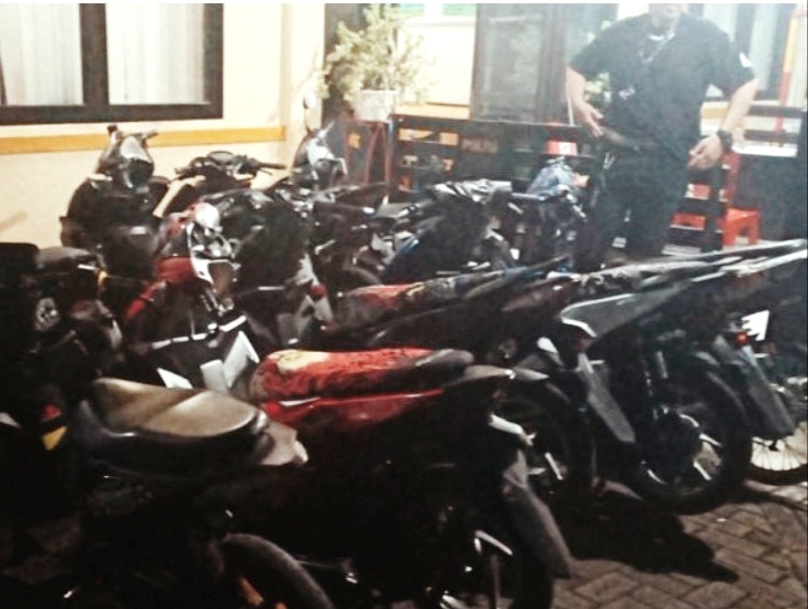 Penindakan langsung dilakukan oleh petugas kepolisian dan berhasil mengamankan 12 unit sepeda motor jenis roda 2.