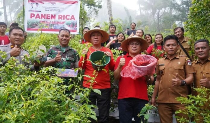 AMURANG – Bersama Sejumlah Petani, Bupati Minahasa Selatan (Minsel) Franky Donny Wongkar SH melakukan panen cabe di perkebunan Desa Picuan Baru, Kecamatan Motoling, Senin (3/6/2024).