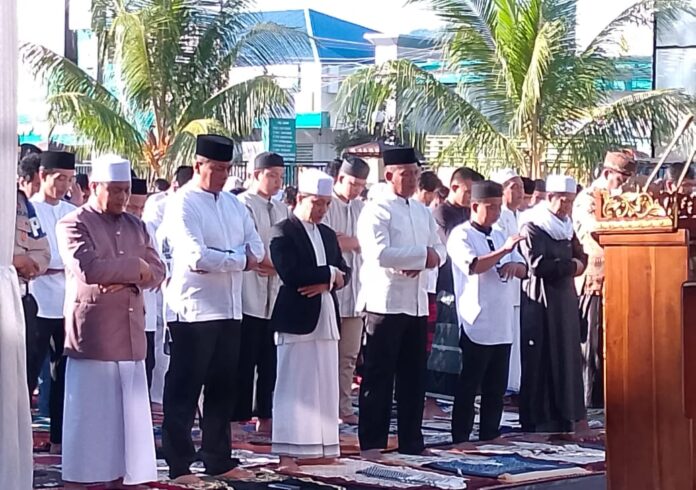Terpantau Senin pagi kurang lebih seribu umat Muslim melaksanakan sholat Idhul Adha 10 Dzulhijah 1445 di Halaman Mapolda Sulut (17/ 6/2024), bertindak sebagai Imam Muhamad Latara dan Khotib Ustadz Faisal Sabaya.