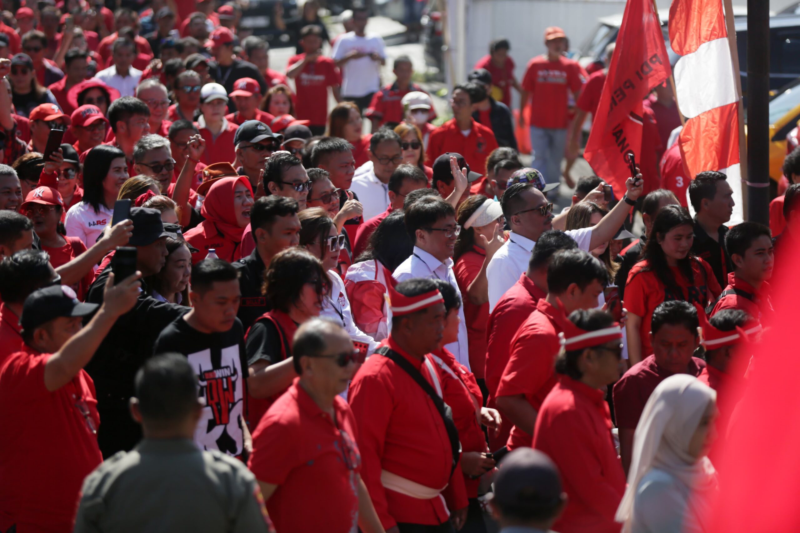 MANADO – Hari kedua pendaftaran Bakal Calon Walikota dan Wakil Walikota di KPU Kota Manado, terlihat dipadati ribuan massa pendukung dan simpatisan serta para kader dari Partai Demokrasi Indonesia (PDI) Perjuangan Manado.