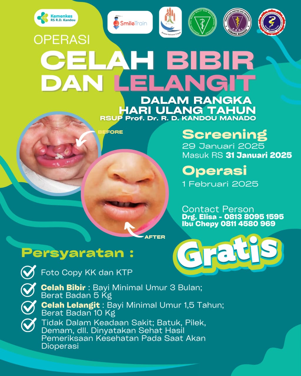 • Untuk Celah Lelangit, bayi minimal berusia 1,5 tahun dengan berat badan minimal 10 kg.
