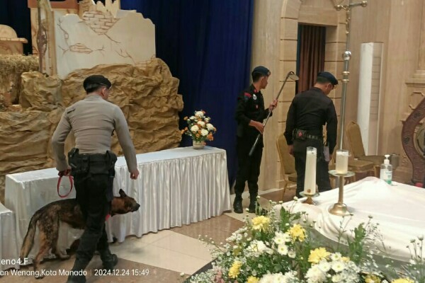 Sedangkan Ditsamapta menurunkan K-9 untuk melakukan sterilisasi di beberapa gereja di Kota Manado.