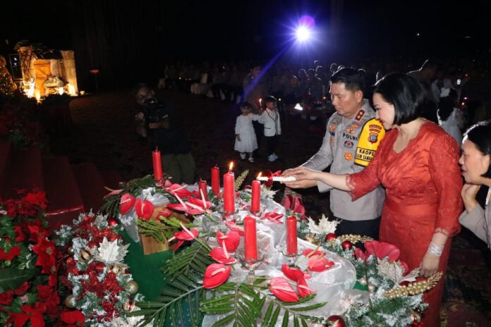 “Sejalan dengan tema Natal tahun ini, marilah dengan penuh sukacita kita terus meningkatkan semangat untuk memberikan perlindungan, pengayoman, dan pelayanan terbaik kepada masyarakat demi terciptanya situasi kamtibmas yang aman dan kondusif,” kata Irjen Roycke Langie.