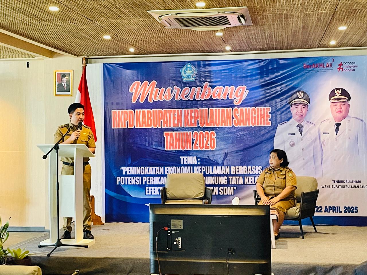 SANGIHE – Bupati Kepulauan Sangihe, Michael Thungari SE MM didampingi Wakil Bupati Tendris Bulahari, menyampaikan tujuh program prioritas pembangunan dalam Musrenbang dan RKPD 2026 yang digelar di Tahuna Beach Hotel, Selasa (22/4/2025).