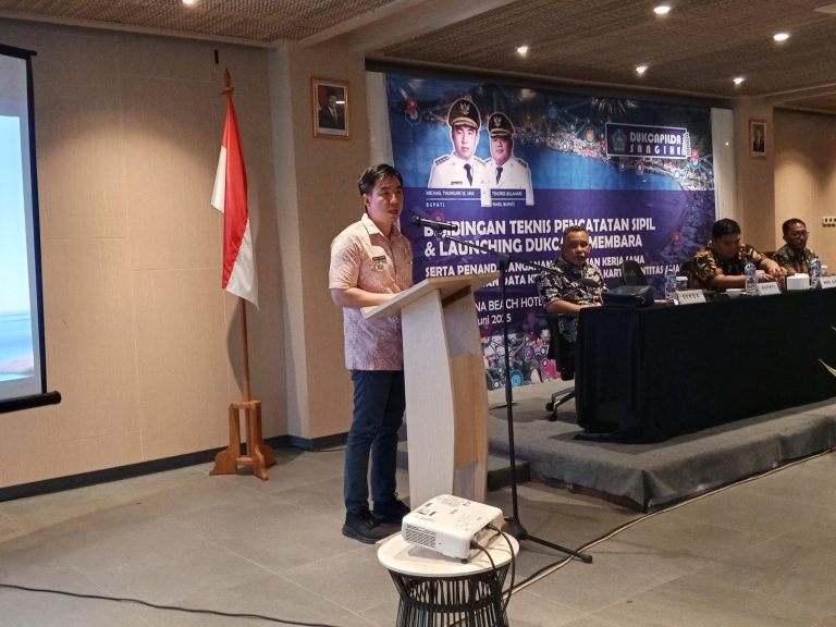 SANGIHE – Bupati Kepulauan Sangihe, Michael Thungari, secara resmi meluncurkan Aplikasi Dukcapil Membara dalam kegiatan yang digelar di Tahuna Beach Hotel and Resort, Jumat (13/6/2025).