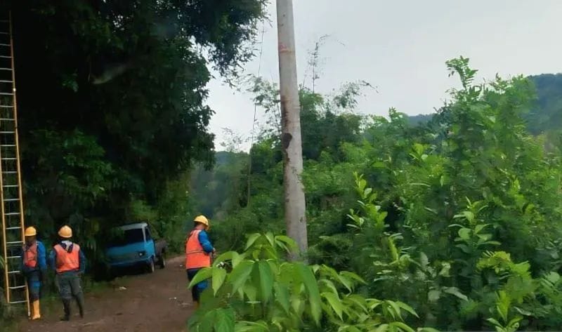 Meskipun medan yang cukup berat akibat kontur tanah yang labil, tim teknis PLN bergerak cepat guna menegakkan tiang yang roboh serta memulihkan kembali jaringan listrik yang terdampak.