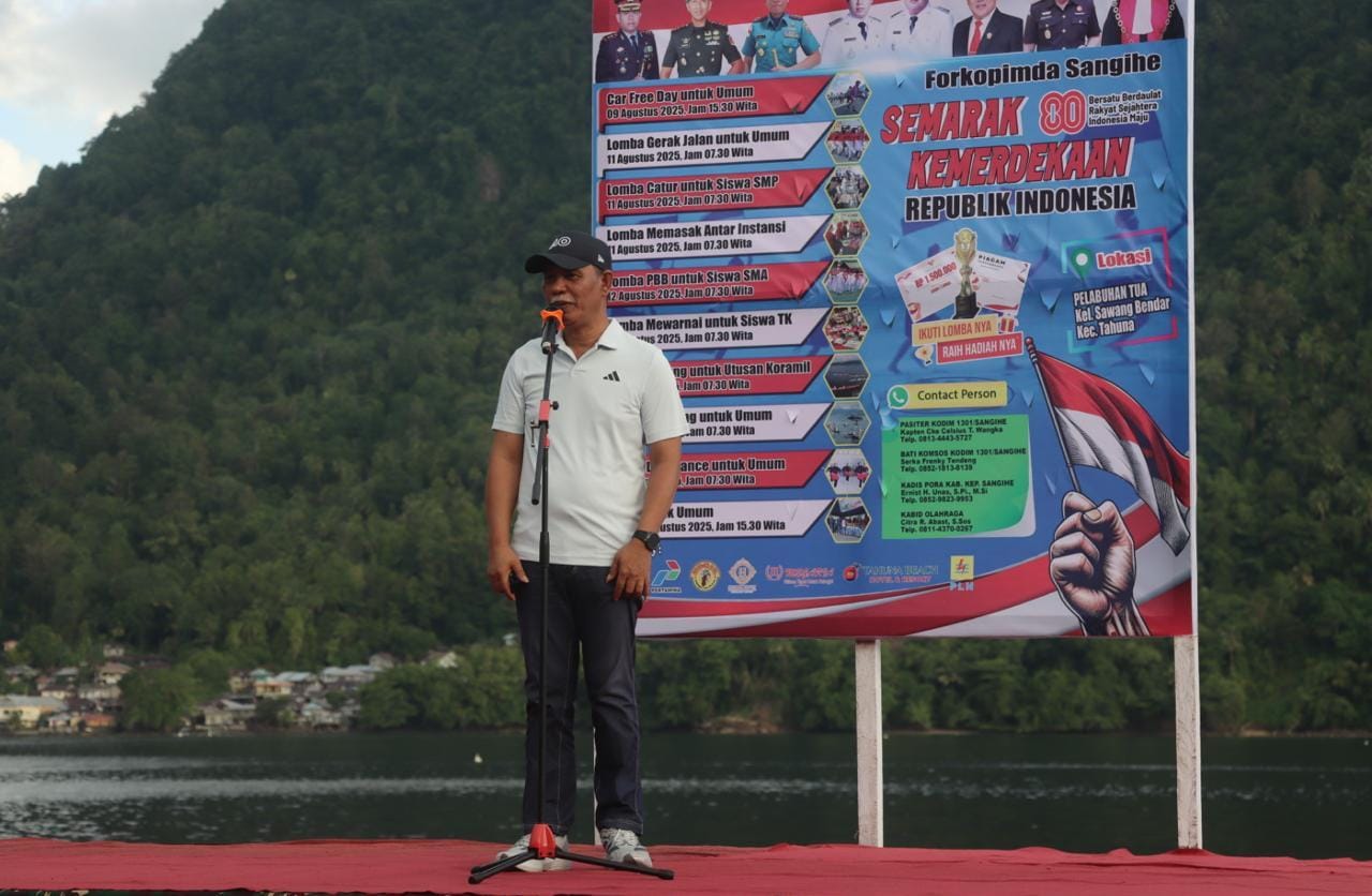 SANGIHE – Sekretaris Daerah Kabupaten Kepulauan Sangihe, Melanchton Harry Wolf, menghadiri pembukaan rangkaian kegiatan memperingati Hari Ulang Tahun ke-80 Kemerdekaan Republik Indonesia yang digelar Kodim 1301 Sangihe, Sabtu (9/8/2025), di Bolevard Tahuna.