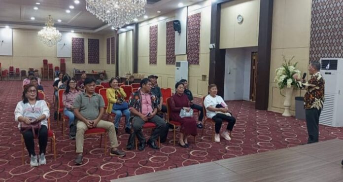 Pelatihan itu menghadirkan nara sumber Dr Agustinus Walansendow SE MM MSi selaku Ketua Sekolah Tinggi Ilmu Pariwisata Manado.