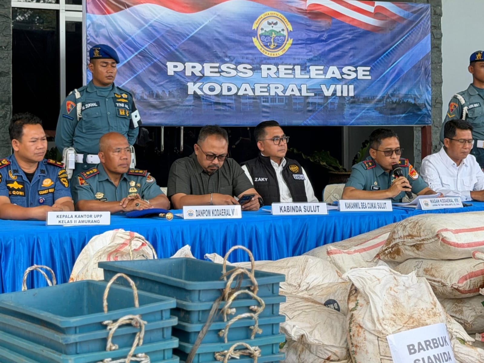 Adapun barang yang berhasil diamankan antara lain 20 lembar triplek 9 milimeter, 18 keranjang plastik, 180 paket kail merek King Eagle, 420 buah sparepart yoke flange, ratusan paket vitamin ayam, perlengkapan memancing, serta 13 karung sianida dengan total berat mencapai 650 kilogram.