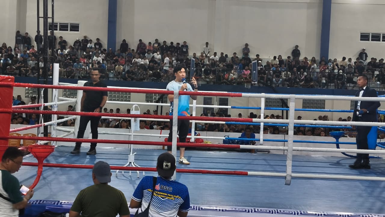Suasana semakin semarak dengan gemuruh dukungan dari ribuan penonton yang memadati arena, menunjukkan besarnya antusias masyarakat terhadap olahraga tinju di daerah ini.